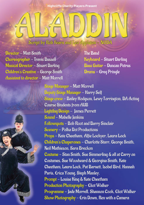 Costume - Stan Smith, Sue Simmerling & all at Carry on Costumes, Sue Woodward & Georgina Smith, Kate Cheetham, Laura Lock, Pat Barnett, Isobel Bird, Hannah Paris, Erica Young, Steph Manley.